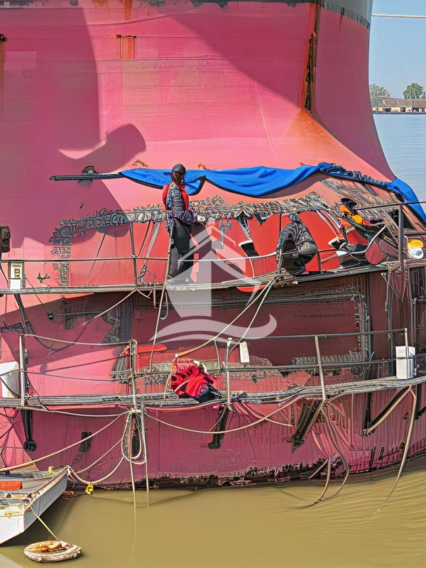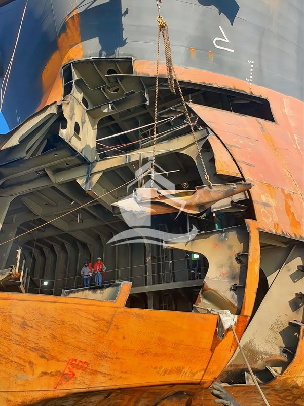 Upon receiving the vessel, Meera Marine conducts a detailed visual inspection and ultrasonic thickness measurements to evaluate the extent of structural damage.