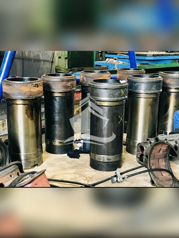 Cylinder liners, piston rings, and bearing clearances are inspected for wear and measured.