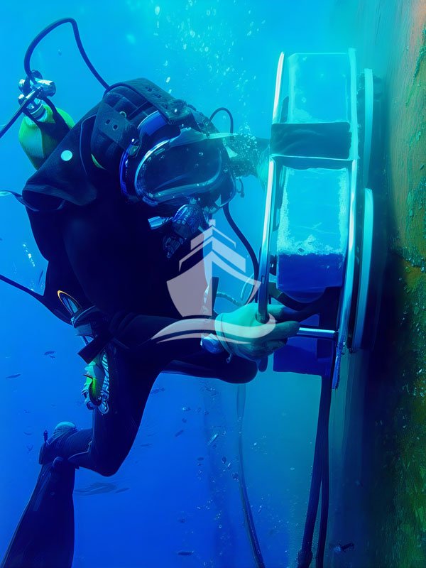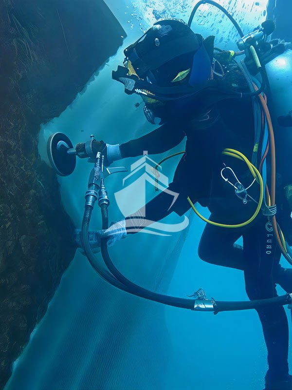 Divers use rotary polishing tools fitted with abrasive discs or polishing pads.